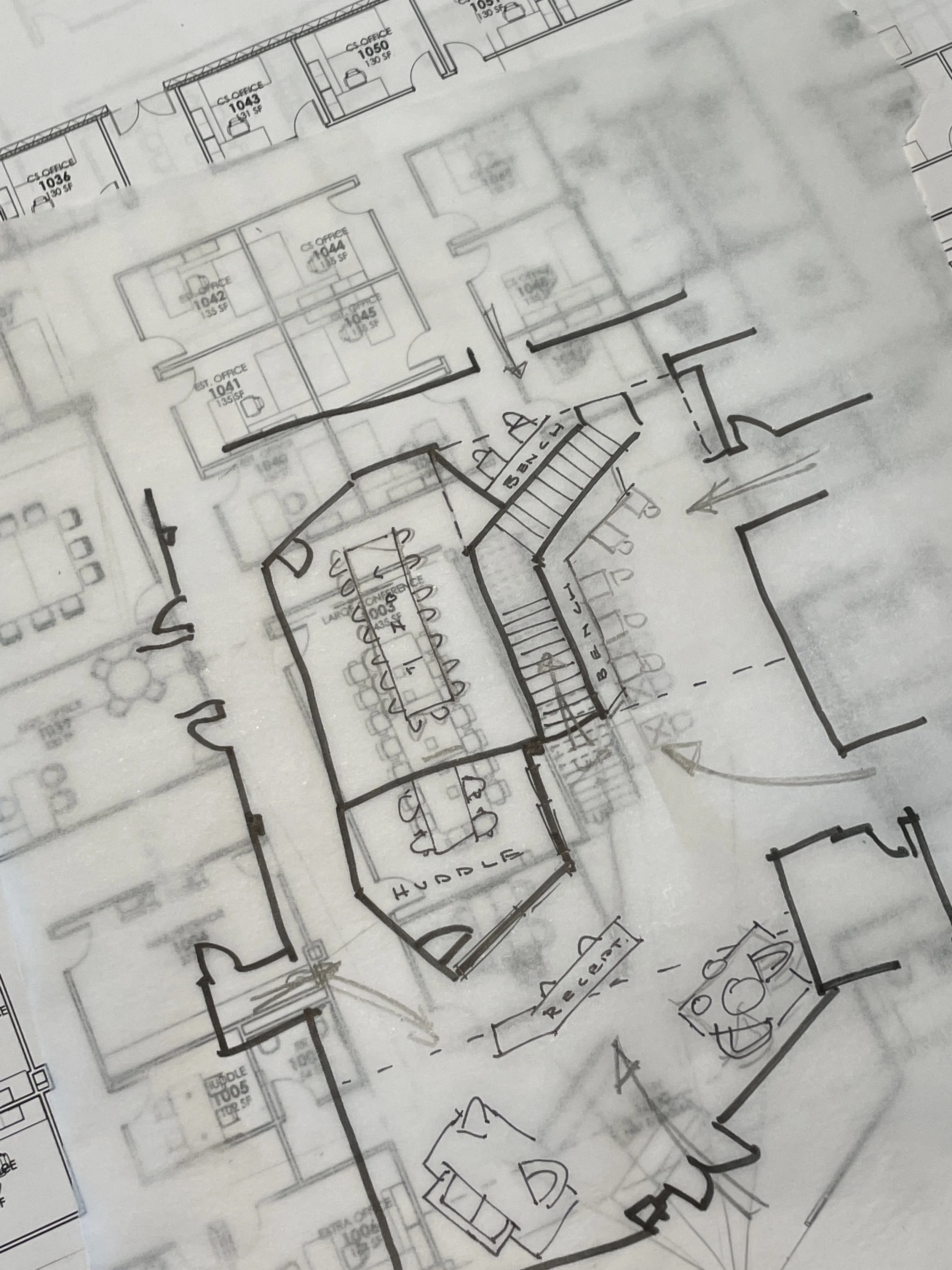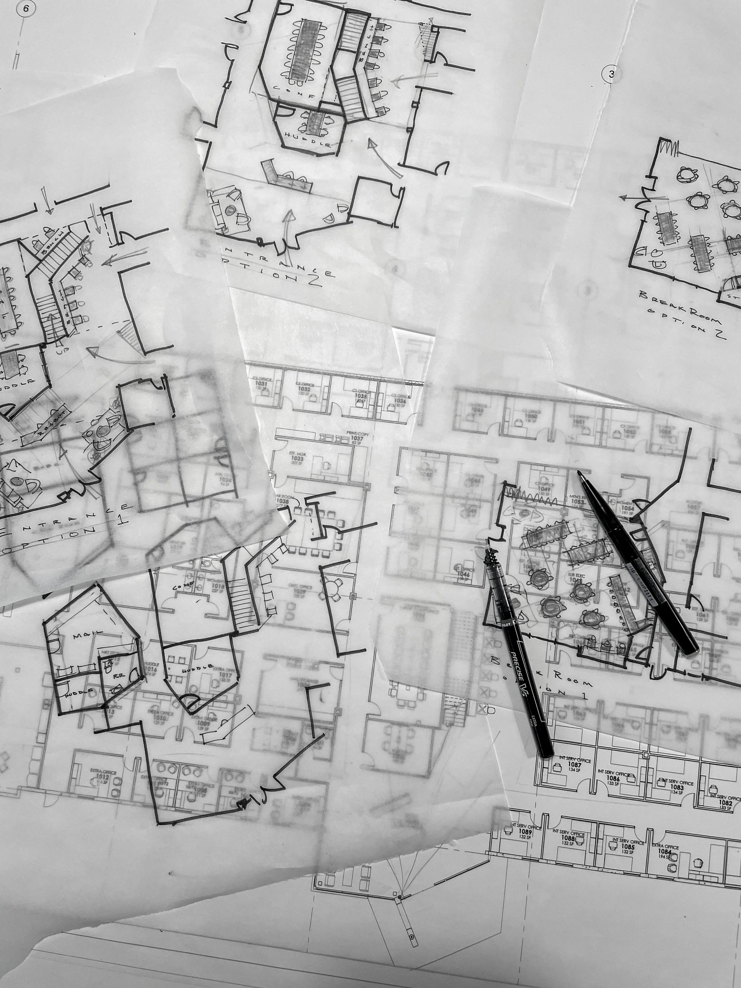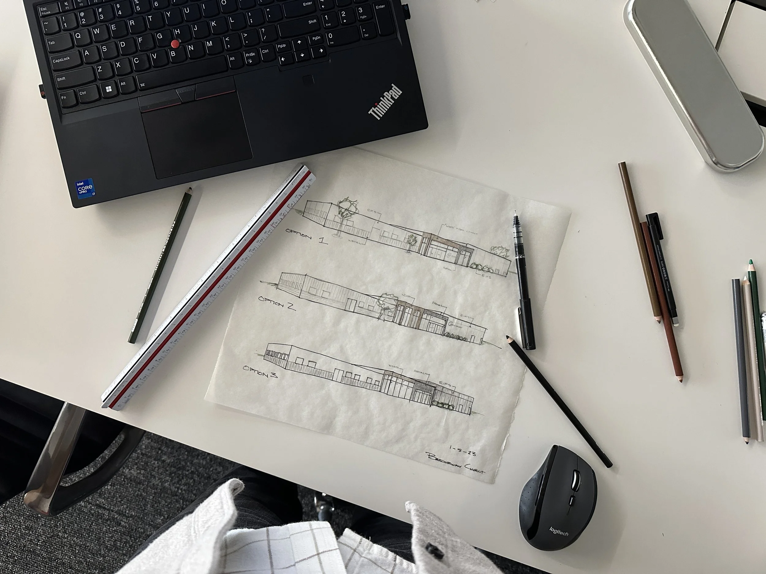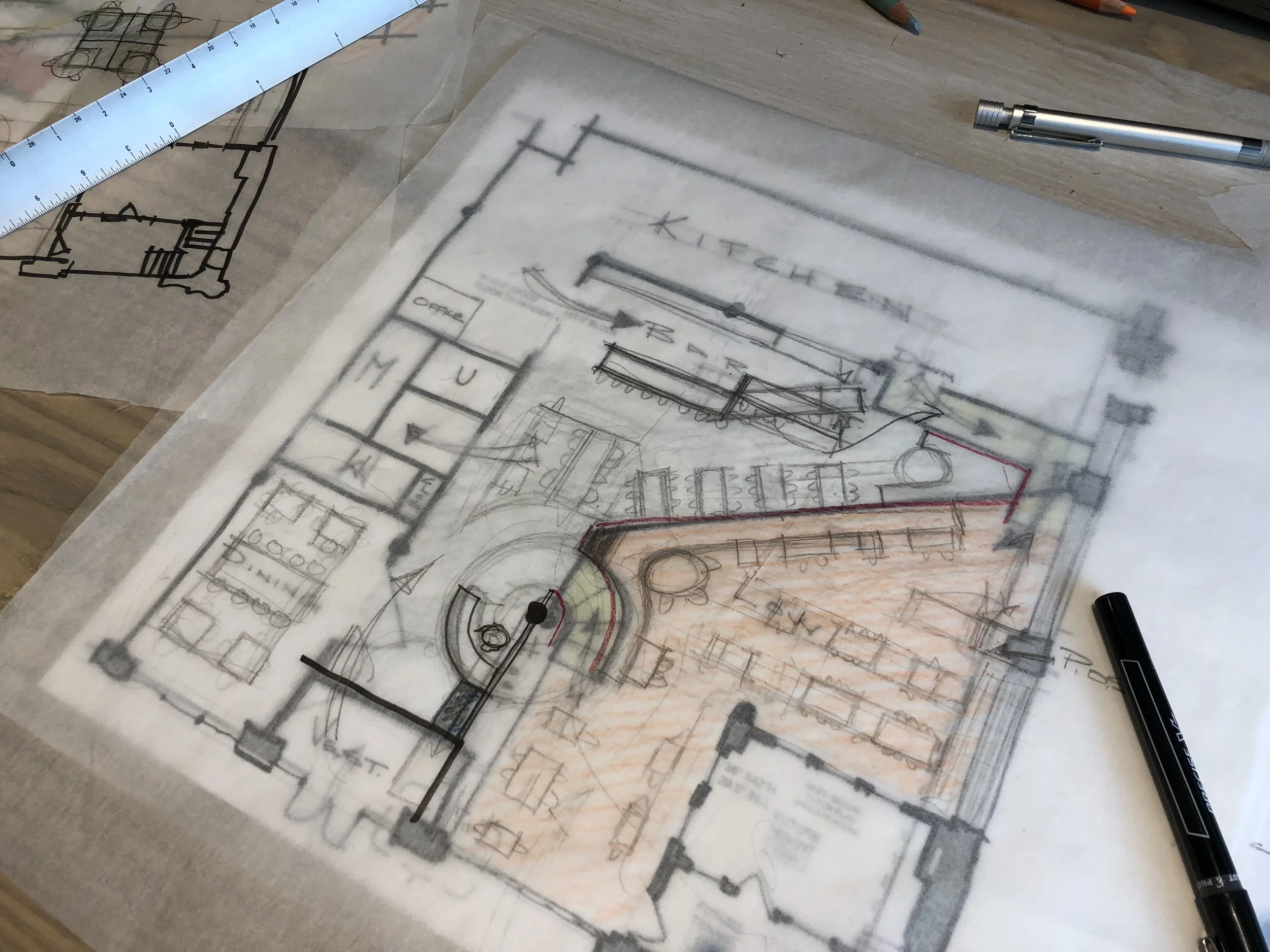 A collection of conceptual sketches. From quick ideation and space planning to refined compositions, these sketches lay the foundation for larger design explorations.